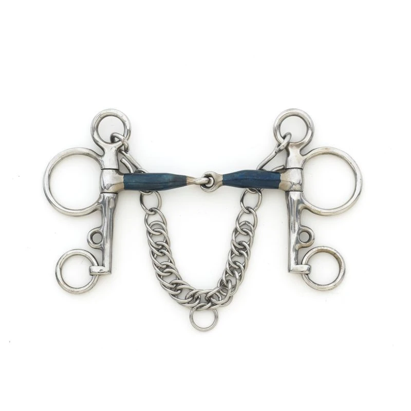 Centaur’s Blue Steel bits are made of a technologically advanced version of Black Steel (traditional Sweet Iron). Blue Steel oxidizes faster and easier compared to Black Steel. It will rust when in contact with air and humidity. This surface rust tastes sweet and naturally stimulates additional saliva production, encouraging better acceptance of the bit by the horse.