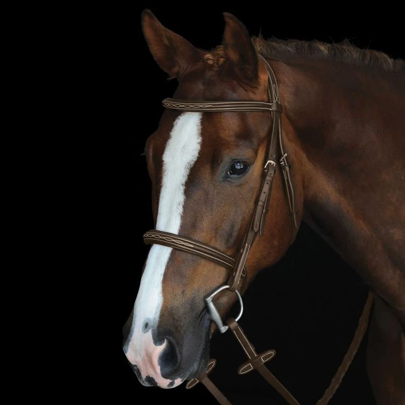 - Stylish fancy stitched raised Cavesson bridle with softly padded ergonomic headpiece