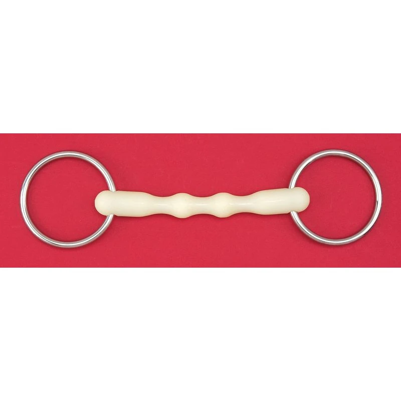 This bit features loose ring cheeks and a polymer mullen mouth.
