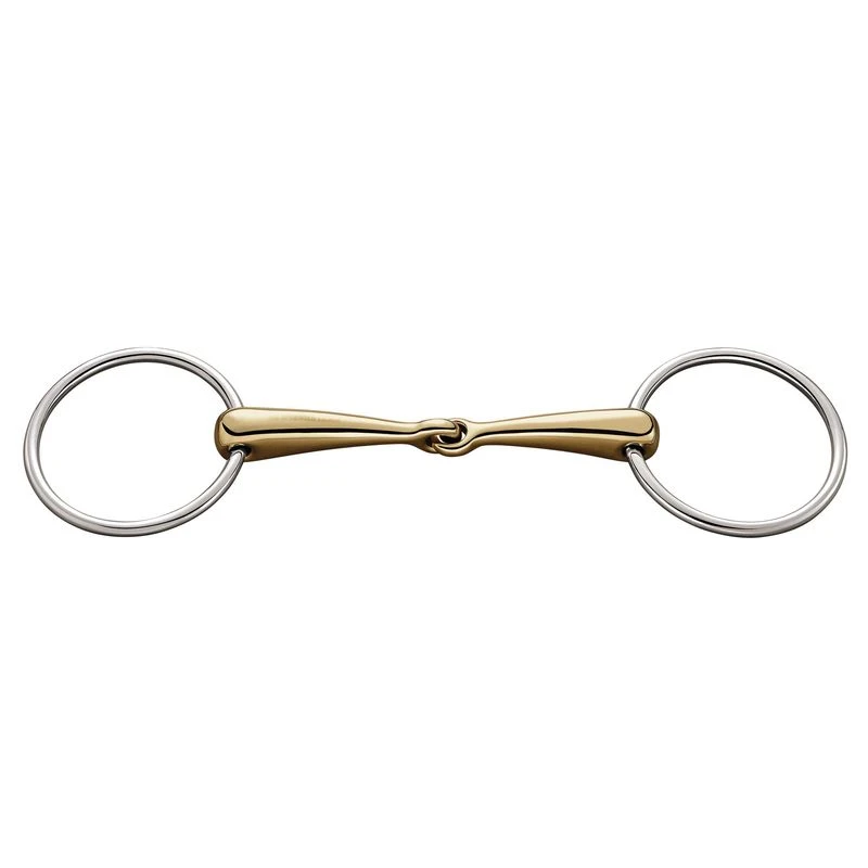 Maintain a soft connection with your horse when you ride him with the Loose Ring 18mm Single Jointed Copper Plus Snaffle Bit.