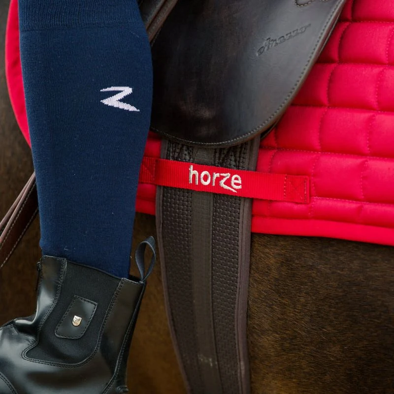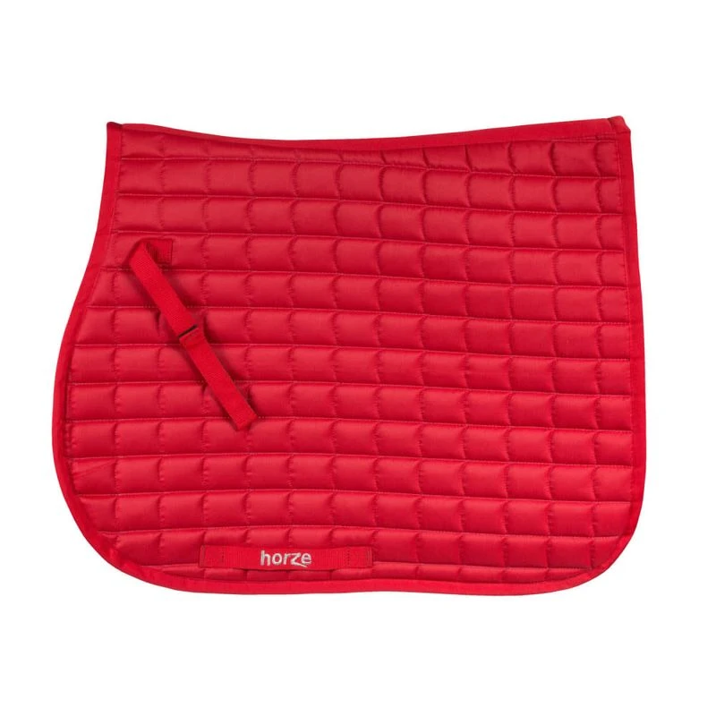 The Horze Windsor All Purpose Saddle Pad edge is trimmed with three rows of cord for a high-quality, sporty look. A high-cut wither adds comfort while hook and loop fasteners hold the saddle pad in place. A girth strap, emblazoned with the Horze emblem, will keep your saddle from slipping. Moisture-wicking fabric keeps your horse dry, the small diamond-style quilted fabric adds a fresh look, and a foam-lined pad cushions your ride.