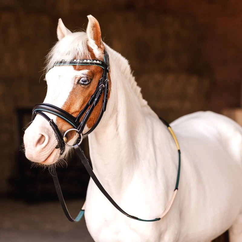 The Magic Carousel Bridle is a bright addition to your pony’s tack, thanks to it’s colorful soft padding at crown and browband. The combined noseband features a lining in the matching color. Colorful crystals in the browband make your pony stand out in teh arena. Don’t forget to get the matching Magical Carousel Rainbow Reins!