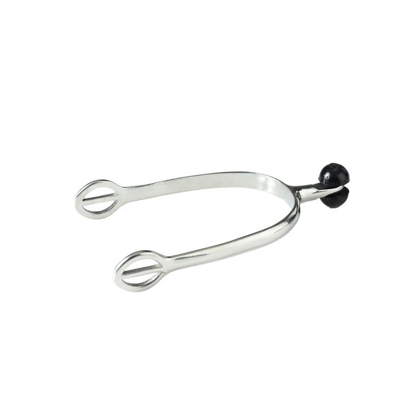 These roller ball style spurs offer gentle enhancement of the leg aids while preventing rubs or hair damage on sensitive horses. These spurs are also a great choice for riders who are new to using spurs. These spurs are made of stainless steel with a .79″ plastic roller ball end.