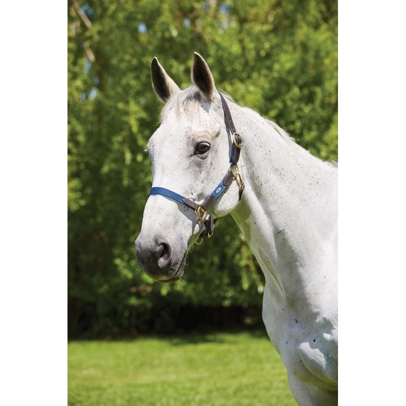 It has a full leather crown (making it field safe), and an adjustable nose. The throat snap makes it into a grooming halter.