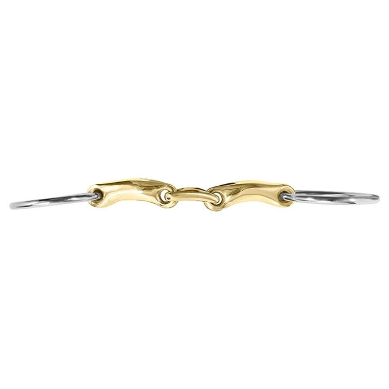 The M. Toulouse Curved Mouth 18 mm Loose Ring Bit with Lozenge offers a flatter-shaped bean lozenge at the center that is kinder in the horses mouth being slightly longer and flatter to lay smoother against the tongue.