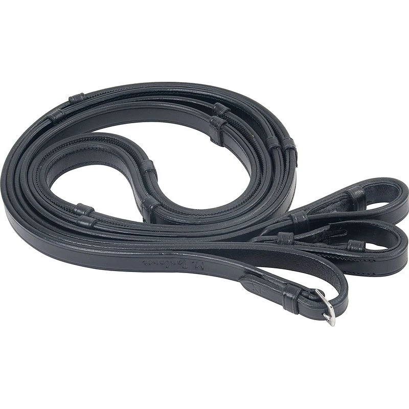 The M. Toulouse Leather Dressage Reins feature rubber lining and leather stops.