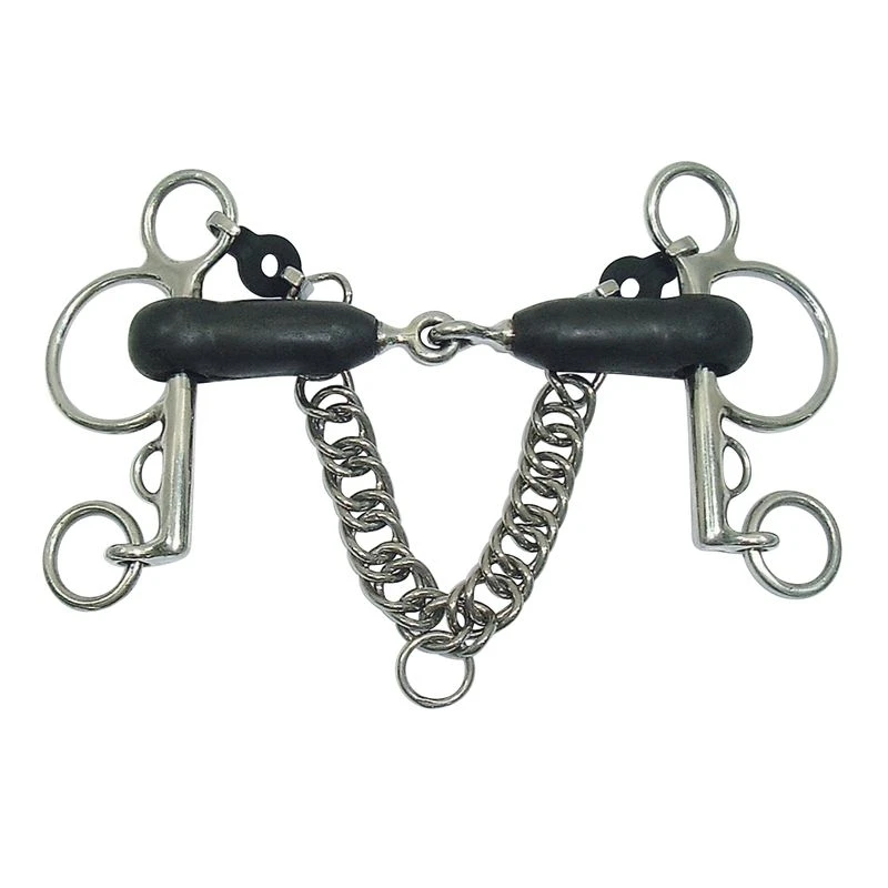 This bit features pelham cheeks, and a rubber Magic system mouthpiece.