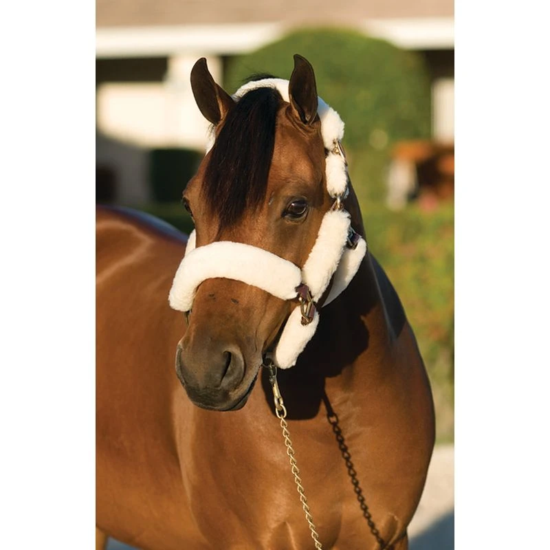 The Ovation Elite Sheepskin Leather Halter is ideal for hauling show horses that need to come out of the trailer at their best.