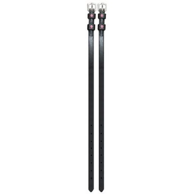 Black leather straps with discreet crystals on the keepers. Imported leather.