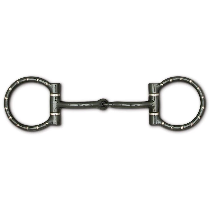 A Western Dee typically has a rounder shape than and English Dee, somewhat more like an eggbutt. It is a direct rein bit and will not pinch at the lips as an o-ring can. The black satin finish gives it a design touch.