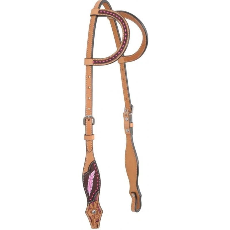 Western Rawhide Country Legend Gator And Feathers Double Ear Headstall – Golden/Pink
