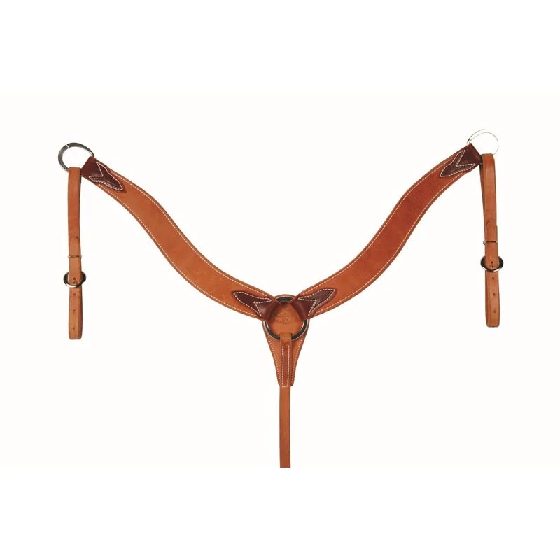 Doubled and stitched harness leather breastcollar that is latigo lined with latigo accents, completed by contrast stitching and stainless steel hardware.