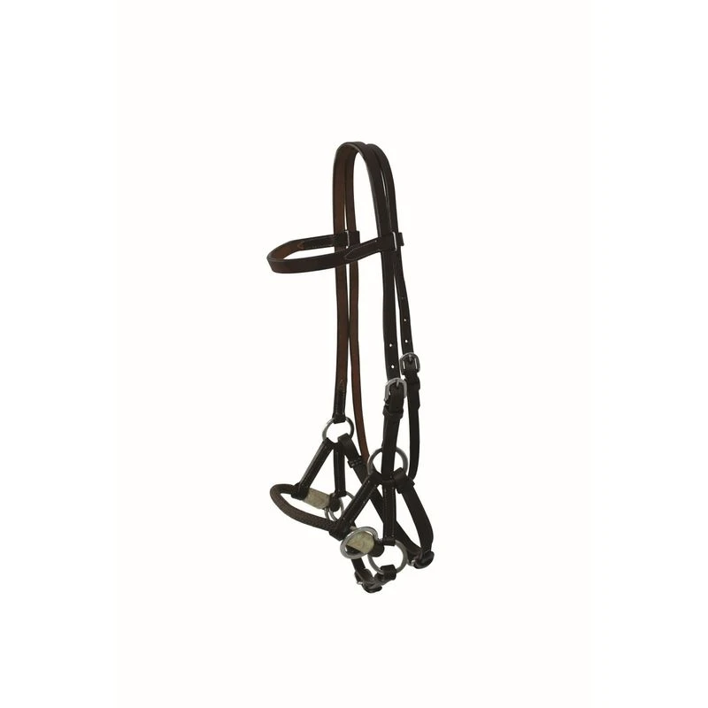 For the perfect start, the Western Rawhide by Jim Taylor Side pull is your go-to gear for your young or restarted horse. This oiled leather headstall features one rope noseband for a gentler touch and double curb straps for stability.