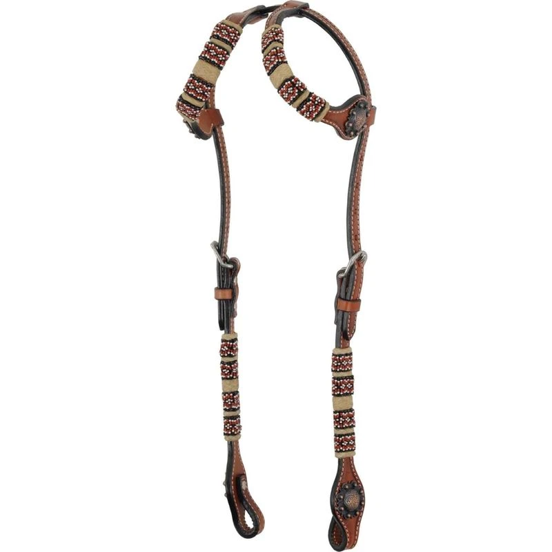 A timeless and classic series, the Western Rawhide Country Legend Rawhide & Red Beads Double Ear Headstall features red and black beading with rawhide accents.