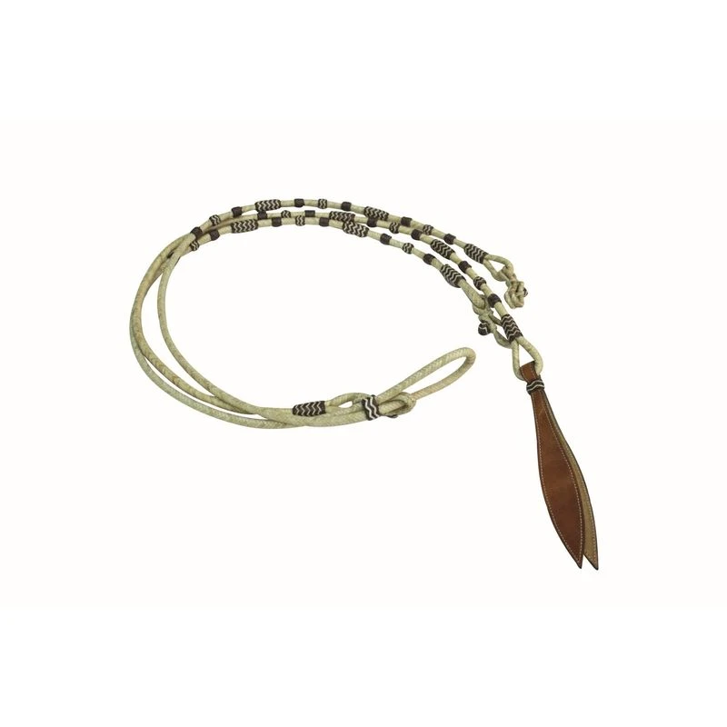 That natural rawhide feel with sturdy design and topped with a leather popper! Complemented by rawhide knots in 2-tone style and a leather popper.
